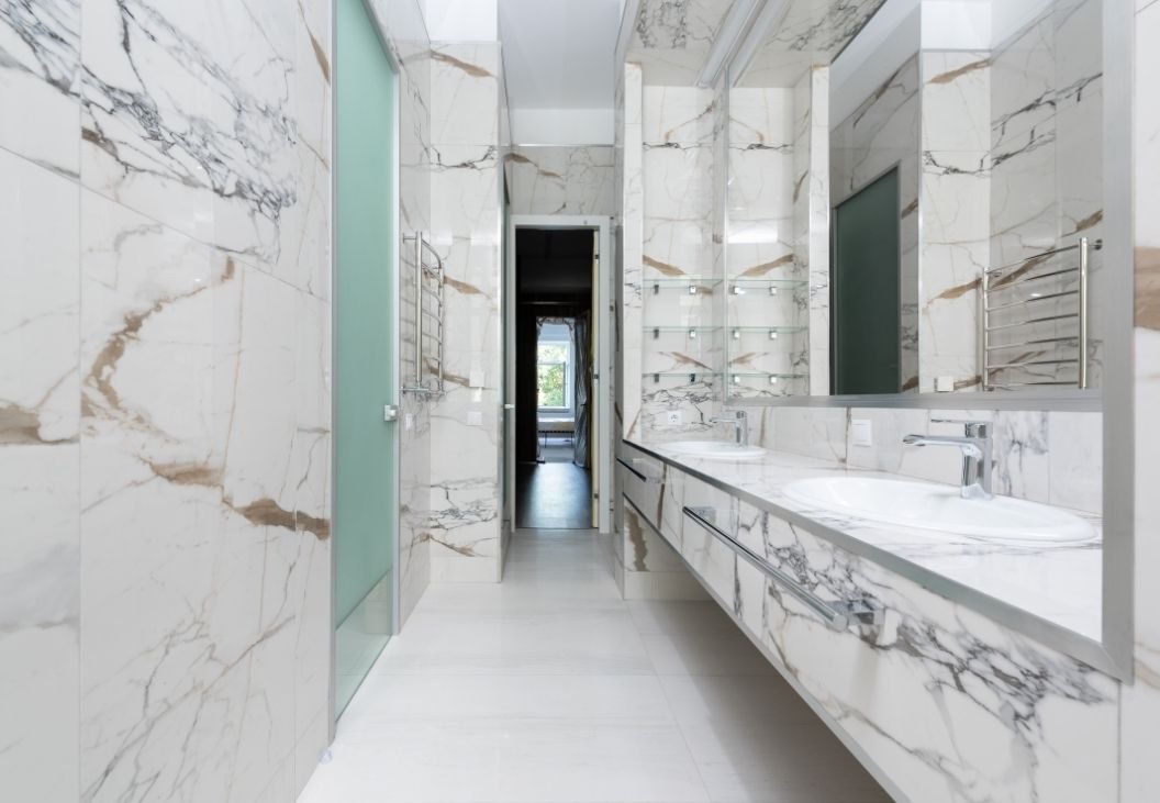 - Carrelage : Format 60×120 cm, effet pierre naturelle
